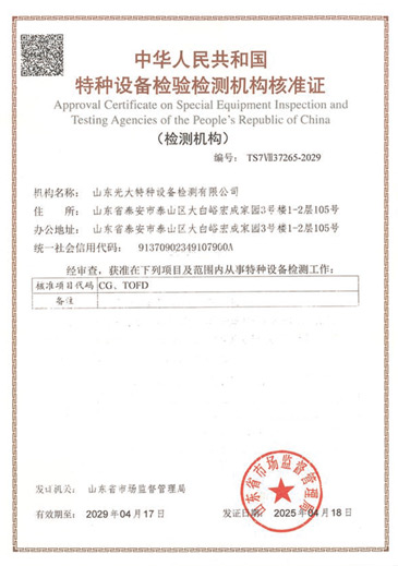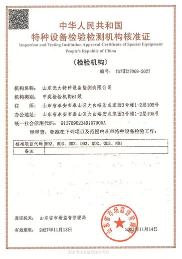 【特種設(shè)備檢驗(yàn)資質(zhì)和檢驗(yàn)范圍】 RD2 定期檢驗(yàn):第一、二、三類固定式壓力容器(不含超高壓容器,大型高壓者器、球形儲(chǔ)罐) RD3定期檢驗(yàn):第一、二類固定式壓力齊器(不含球形儲(chǔ)罐) DD2定期檢驗(yàn):公用管道 DD3定用檢:工業(yè)管道 QD2 定期檢驗(yàn):塔式起重機(jī)、流動(dòng)式起重機(jī),門座式起重機(jī),升降機(jī),纜索式起重機(jī)、梔桿式起重機(jī),額定起重量小于 10T(不含10T)的橋式起看機(jī)和門式起重機(jī) QD3定期檢驗(yàn):流動(dòng)式起重機(jī),塔式起重機(jī),升降機(jī) ND1定期檢驗(yàn):場(chǎng)(廠)內(nèi)專用機(jī)動(dòng)車...