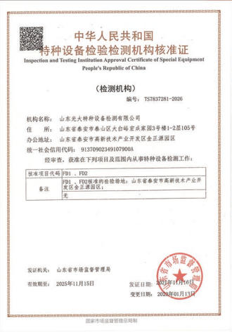 【特種設(shè)備檢驗(yàn)資質(zhì)和檢驗(yàn)范圍】 RD2 定期檢驗(yàn):第一、二、三類固定式壓力容器(不含超高壓容器,大型高壓者器、球形儲(chǔ)罐) RD3定期檢驗(yàn):第一、二類固定式壓力齊器(不含球形儲(chǔ)罐) DD2定期檢驗(yàn):公用管道 DD3定用檢:工業(yè)管道 QD2 定期檢驗(yàn):塔式起重機(jī)、流動(dòng)式起重機(jī),門座式起重機(jī),升降機(jī),纜索式起重機(jī)、梔桿式起重機(jī),額定起重量小于 10T(不含10T)的橋式起看機(jī)和門式起重機(jī) QD3定期檢驗(yàn):流動(dòng)式起重機(jī),塔式起重機(jī),升降機(jī) ND1定期檢驗(yàn):場(chǎng)(廠)內(nèi)專用機(jī)動(dòng)車輛 ...